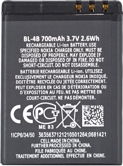 Elke batterij van GSMbatterij.nl is gemarkeerd met een code. Met deze code kunt u precies zien welke toestellen gebruiksvriendelijk zijn met de accu. De code van deze Nokia batterij is bijvoorbeeld BL-4B. Controleer op de achterkant van uw oude batterij of de code overeenkomt met de code van de batterij die u wilt gaan bestellen. Het is geen probleem als er zich meerdere codes op uw oude batterij bevinden, zolang één van de codes maar overeenkomt met de batterij die u wilt bestellen.